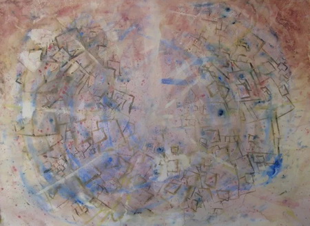 另外,我也画了一张画。(上图)这幅画试图捕捉当我们闭上眼睛的时候,我们看见的东西。因为即使闭上眼睛,视觉神经元的运动还是能让我们继续看见。很多人应该都有这样的体验。