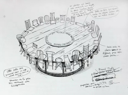 陈箴:对。还有"圆桌"也是一个典型的例子:一件能从物质角度拿走的作品必须要完好无损地放到什么东西旁边吗?与这件作品相关的几次装置经历虽然算不上令人心碎,也够不幸了。有几次我让人在展出的随意摆放它,但这件东西因为大小和意义的问题,需要一个特别简单的环境和某种程度的集中。因此,即使这件作品是雕塑,是一件大家具,我也不会再让人动它了。这是一个教训。以后必须更好地控制自己的作品。我对你刚才讲的一件艺术作品在创作完成以后的命运,和艺术家死后作品的命运深有同感,因为人们对作品的解释真是太随意了。