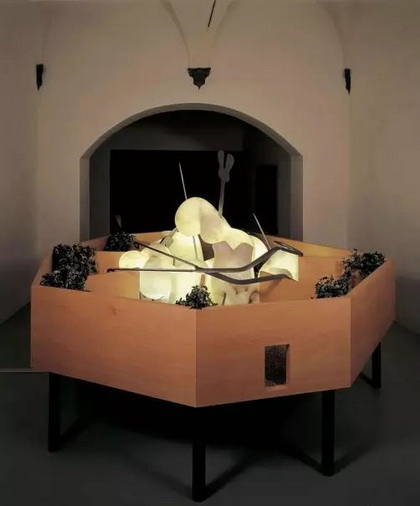 陈箴:是的,的确伟大。但这并不是一回事,就像一杯水和教堂里的蜡烛无法比较一样。我们没必要区分雕塑和装置两种概念的不同。把我的作品看成一个整体可能更有意思。1994年我为纽约新当代艺术博物馆创作的"荒野"是无法挪动的。我只在柏林重装过一次;但重装的效果和原来一点儿都不一样。特拉维夫的《绝唱--各打五十大板》里面有一种建筑层次,即使作品可以挪动,也不同于雕塑。它同时还是一件要人演奏的乐器。很多人不明白这件作品的含义:击鼓是一种治疗,是一种自我惩罚和自我警示;只有在观众击鼓的时候,作品才算完成。而且这件作品的创作意图就是要尽可能多地在不同地方展出,让每一个人敲击。现在我正在严肃地考虑把这件作品在巴西展出。你可以想象它会受到怎样的待遇。但我并非所有的邀请都接受,因为我不愿意把它像纯粹的雕塑品一样展览。