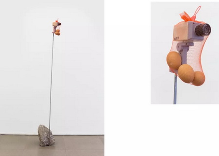 ▲ 《谢谢!愿您有美好的一天!- 1》,2015,摄像头、鸡蛋、钢条、石头,尺寸可变。