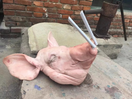 ▲ 物联网猪头,这是杨健参加最应付的展览作品。