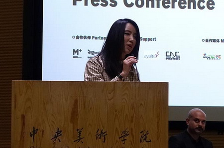 刘栗溧提到CCAA 从创立之初到现在已经有很多改变, 其创立的目的是让中国当代艺术与国际接轨, 在发言中她介绍了CCAA 发展的历史、遵循的原则、设立的奖项种类以及各奖项的评选制度、 评委团队以及未来CCAA的重要任务。