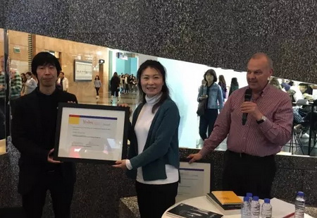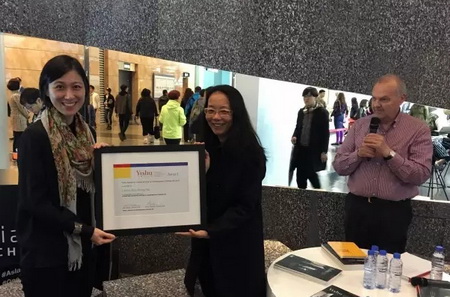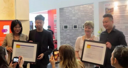 ▲ 2015年获奖人马唯中接受JNBY总裁李琳颁奖。