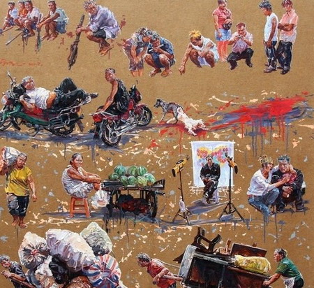 谈到举办重庆青年美术大展的初衷时,总策展人冯斌说:“四川美术学院在重庆,有被边缘化的感觉,但在全国又是很重要的一块牌子。最近几年,很多人提出来,为什么我们重庆不做一个双年展,最后政府终于下决心要开始做。而艺术家出作品,常常是在青年时候,包括我们重庆最有名牌效应的罗中立,他的《父亲》也是在中国青年美展上出来的(1981年)。所以就定位青年美术,作为青年艺术家成长的摇篮,一个阶梯,现在资源在我们这些老头子手中,我们就得给他们搭台子。今天他们都是年轻人,不知道下一个罗中立会是谁。”