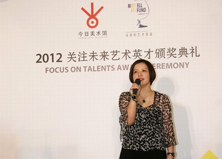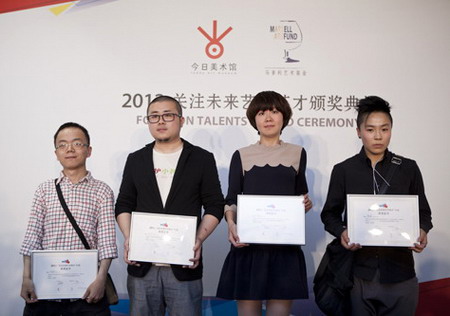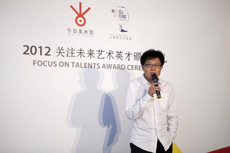 2012年5月12日,由今日美术馆携手马爹利艺术基金共同推出的2012“关注未来艺术英才”计划颁奖暨入围展开幕仪式在今日美术馆举行。本次入围展将于5月13日至5月27日向公众开放。评委代表吕澎、凯伦•史密斯、谭平、吴洪亮、徐累、今日美术馆馆长张子康以及保乐力加中国部的传播总监王珏出席了当日的颁奖典礼。张子康馆长首先致辞并向大家介绍了“关注未来艺术英才”计划的定位与筹备情况;评委代表吕澎向大家介绍了专家评委会对作品的评审情况。