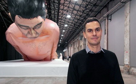 马西米利亚诺·焦尼(Massimiliano Gioni)在意大利时尚设计师特鲁萨尔迪100周年纪念展“八个半”现场留影