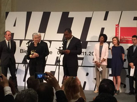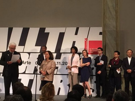 颁奖仪式由威尼斯双年展主席保洛·巴拉搭及总策展人奥奎·恩维佐主持。
