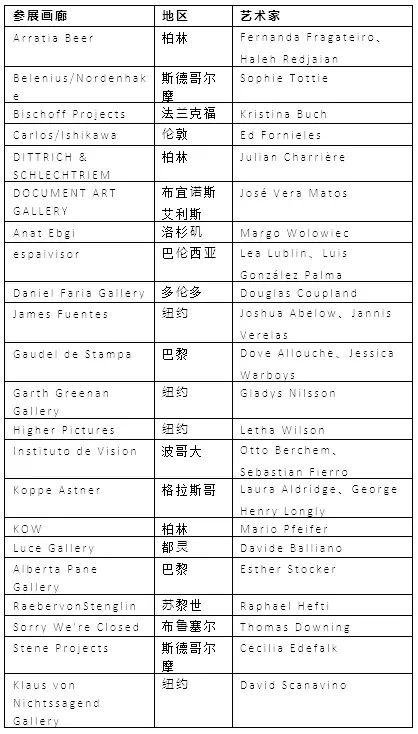 完整参展画廊名单如下:
