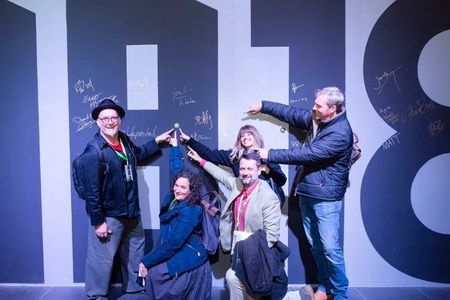 2018年11月14日下午5点,2018国际媒体建筑双年展在中央美术学院7号楼7层展览现场开幕。中央美术学院建筑学院院长朱锫、国际媒体建筑学会联合创始人戈诺特·切舍图(Gernot Tscherteu)、国际媒体建筑学会联合创始人马蒂亚斯·汉克·霍伊思勒(Matthias Hank Haeusler)、国际媒体建筑学会联合创始人马丁·托米切(Martin Tomitsch)、中国照明学会理事长邴树奎出席开幕式并致辞。中央美术学院院长范迪安、中央美术学院副院长王晓琳、中央美术学院副院长吕品晶、中央美术学院美术馆馆长张子康、中央美术学院设计学院院长宋协伟、中央美术学院实验艺术学院院长邱志杰、中央美术学院发展规划处处长、中央美术学院视觉艺术高精尖创新中心副主任王川、设计学院费俊教授、建筑学院副院长崔冬晖副教授、建筑学院党总支副书记李琳副教授、建筑学院张宝玮教授;中国照明学会秘书长窦林平、北京元点未来科技有限公司CEO张野、大峡谷照明系统(苏州)股份有限公司董事长张家瑞、深圳市洲明科技有限公司董事长林洺锋、深圳市蔷薇科技有限公司董事长娄涛出席开幕式。2018国际媒体建筑双年展主席、国际媒体建筑学会·中国主任、中央美术学院视觉艺术高精尖创新中心常务副主任常志刚教授担任主持人。