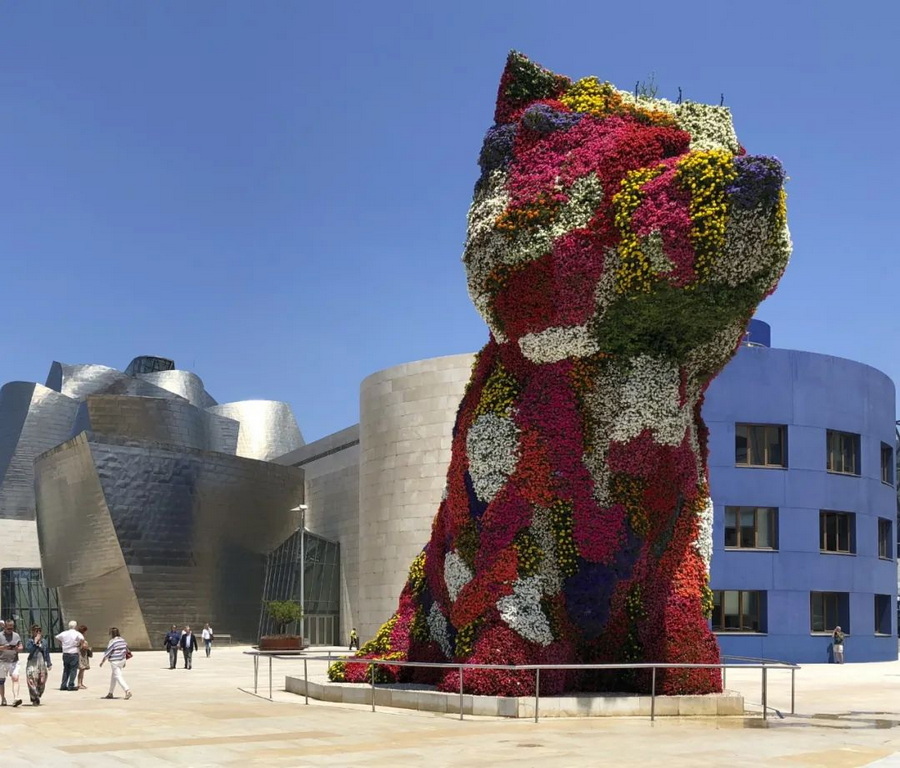 ▲杰夫·昆斯(Jeff Koons)《小狗》(Puppy),不锈钢、土壤和植物,1240×1240×820cm,1992年 ©Guggenheim Museum Bilbao.