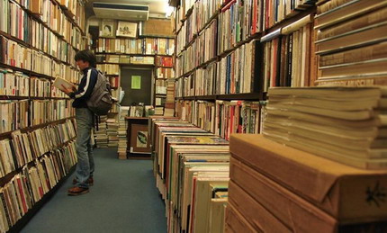 在筹划展览“浮游的前卫”的过程中,策展人多次光顾的东京神保町旧书街源喜堂书店。