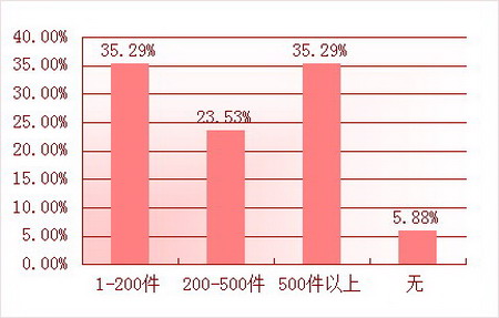 藏品是美术馆的立馆之本。捐赠传统的缺失直接造成了国内美术馆藏品匮乏。而在作品有价、艺术品成为文化产业一部分的今天,美术馆征集馆藏越发艰难。调查到的几乎所有的美术馆都拥有馆藏,且数量集中在200件以上。其收藏作品的形式多样化,包含了书画、油画、雕塑、版画等各个门类。这些作品的仓储多为美术馆自理,只有少数美术馆在仓储方面委托给专业公司代为打理。