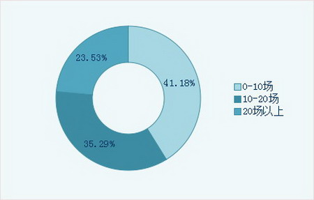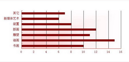 展览是衡量一座美术馆专业水准的硬尺标,也是确立一座民营美术馆业界位置的试金石。展览策划或者展览的学术水准是衡量美术馆的一把硬尺标。既要坚持展览的专业学术水准又要顾及公众性、参与性,这是民营美术馆面临的一个新挑战。据调查,大多数美术馆都有自己的陈列展,每年的办展数量在10个以上。此外,民营美术馆更重视学术展览,适时举办一些商业展览。其中,每年的学术性展览多在10个以内,商业展览数量多在5个以内。