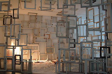 750个旧窗户搭成的高6.5米、直径4米的塔,地面上铺满碎玻璃。