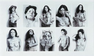 作为女性主义运动早期的成果,这件作品还比较简单。包括她全身赤裸,手中紧攥一把手枪(男性生殖与权力的象征)到处呼救的行为艺术,也显得过于直接。她真正有震撼力的作品,却是她罹患癌症之后创作的《内部维纳斯》。