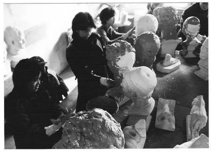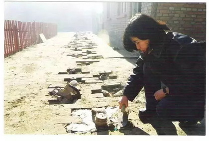 ▲ 艺术家隋建国的作品在“北京浮世绘 ”展出 2003年