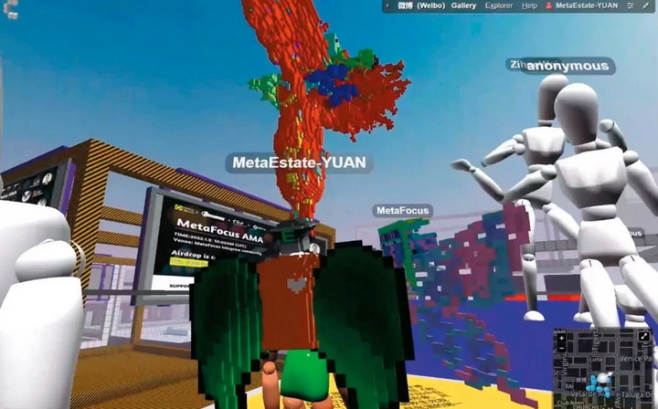 ▲ 2022年1月,微博数字美术馆上线,图为由小像素块构成的游戏式数字空间