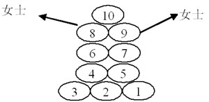 a、按体重排列顺序,重的艺术家在下面,轻者上叠。