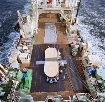 在巴尼自我满足的世界中,身体总是作为一种更加抽象的运行结构的象征,试图通过自我约束机制把自我包围起来。这样,意志力就受到处于生理控制之下的性欲的严格管制,而这种生理控制已渗透到了身体有机体的各个角落。巴尼认为,如果这种欲望与节制有规律地循环往复足够多的次数,“那某种确实难以捉摸的东西就可能溜出来,这种东西具有形体,但是一种没有被过度限制的形体。”(12)在他实践的初始阶段,巴尼为这种自我强加的抵制力和它所储存的创造力制作了一个图形标志。他的“场标志”,即一个由一根横线水平二分的椭圆,不仅意指这个孔穴和它的闭合,而且意指这个密封的身体和一个充满可能性的竞技场。在巴尼的全部艺术晶中,这个主旨是无处不在的。正如一个传统的纹章图案,它压缩并把这位艺术家的标志学转化为视觉的速记符号。但是“场标志”也起着公司晶牌的功能,借助它在艺术晶中的不断出现来确保某一晶牌的身份。把古代与流行混合起来,这个图形意象成了巴尼的独特美学性语言,并且这种语言在它构造新世纪的神话过程中仍在不断地发展进化。