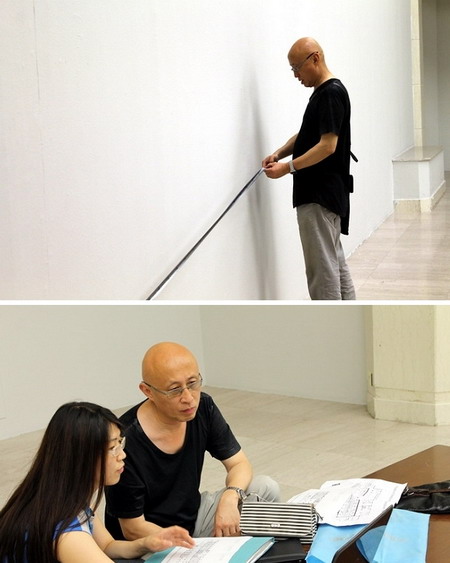 “景像2012”中国新艺术展,策展人俞可在布展现场