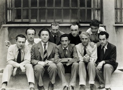 图为超现实主义团体1933年在巴黎,超现实团体曾集体假如法国共产党。