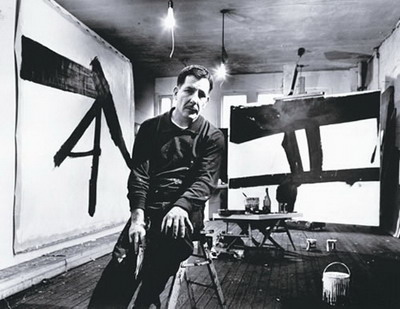 1954年抽象表现主义画家Franz Kline在他的工作室里。