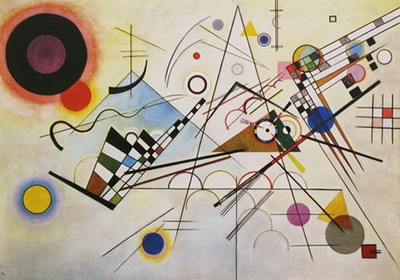 图为康定斯基作品,他在古典绘画传统之外寻找精神空间的可能性,在他看来,这种精神性的空间只能是属于现代主义的。