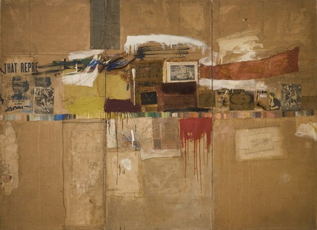 罗伯特·劳申伯格,《布雷斯》(Rebus),1955年,综合材料,243.8 ×331.5 ×4.5厘米,纽约维克托.W.甘兹夫妇收藏。