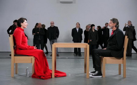玛丽娜 · 阿布拉莫维奇2013年在纽约曼哈顿现代艺术博物馆举办的个人回顾展“艺术即为当下”和分手22年的乌雷四目相对。