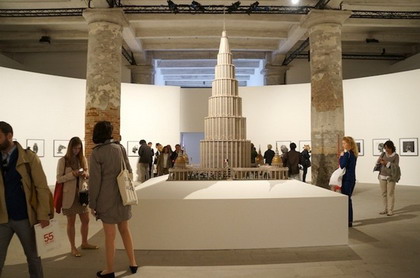 第55届威尼斯双年展的主题——“百科殿堂”(Il Palazzo Enciclopedico),按照主策展人乔尼(Massimiliano Gioni)的解释,是缘于1956年自学成才的意裔美籍艺术家阿乌里迪(Marino Auriti)一件乌托邦式的作品草案,即一座试图容纳全世界所有知识成果和旷世发明的博物馆,该博物馆高达700米、分为163层,幅员相当于华盛顿市16个街区的规模,当然,这一意淫式的、带有强烈乌托邦色彩的作品注定无法实现,1955年11月16日,该作品的设计图纸被永久地保存于美国专利局。