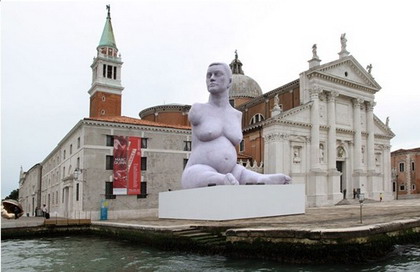 相信所有在双年展期间出入军械库和绿园城堡的参观者,其视线都会不自觉地被矗在泻湖对面圣乔治岛上高达11米的充气残疾孕妇雕塑所蛰疼。
