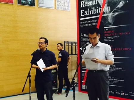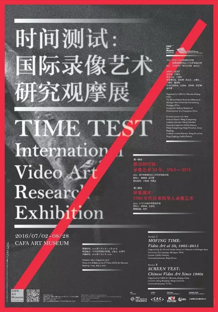 2016年7月2日“时间测试:国际录像艺术研究观摩展”于中央美术学院美术馆开幕,此次展览是中央美术学院美术馆联合美国密歇根州立大学布罗德美术馆共同策划。以录像艺术发展脉络为轴,呈现了一系列在过去50年来对西方影像艺术发展有着重大影像的作品“移动的时间:录像艺术50年,1965—2015”,并配合展出了“屏幕测试:1980年代以来的华人录像艺术”重点梳理了过去三十年来华人活动影像艺术作品。此次展出还包括一系列的公共项目,艺术和社会背景大事记,用于公开浏览的延伸阅读出版物,以及由参展艺术家和特邀学者共同参与的讲座及对话活动。