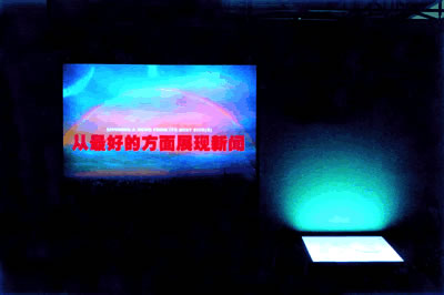 吴山专作品《从最好的方面展现新闻》/电脑合成图片、灯箱/2002年/中国国际展览中心,北京,中国/选自“北京青年报—传媒与艺术”展