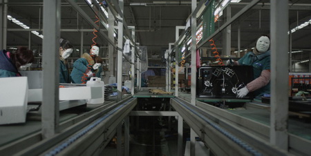无数这样类似的外资企业从九十年代初开始在全中国蓬勃蔓延。这种自由资本主义产业链下密集劳动型的生产方式,荒诞地和自上而下发动的“中国特色社会主义”完美有效地结合在一起。而员工们在录像中集体朗诵出来的1992 年邓小平最重要的南巡讲话内容,正是在解释和指导发生在当代中国的这场“改革开放”。