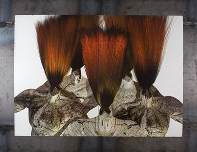 我认为谭力勤艺术方式的独特性和创造性表现在他通过采用最先进的现代数码科技提供的可能性,在虚拟的形象世界中,去揭示和呈现早已被遗忘或封存的历史。这也就是说对远古时代的迷恋和张扬,对在历史长河中流变事物的深思和反省,构成了谭力勤艺术的观念特征。这一特征,使谭力勤对自己所处的当代时空,采取了既拒斥,又以其为作品意义的源泉的辩证方法,以表达他作为艺术家对待不同文明的基本态度和立场。它具体表现为谭力勤对远离现代文明的远古文明的向往,对远离工业文明的农业文明的迷恋。从其创作的数码作品的形象看,史前和原始时代的人与物,野性十足的造型,象征狩猎时代的兽皮和印制在上面的形象,由数码技术,仿造雕塑的材料制作的那些充满粗野力量的人物造型,以及用不同材料、方式和现成品(如代表农业文明的风车、石磨、称等)组合而成的装置,建构了一个与现代文明完全不同的形象世界。很显然,谭力勤的这一艺术方式已经上升到了方法论的层面,并贯穿在他几次举办的数码艺术的个展中。事实上,这次在宋庄美术馆举办的以《折射洗脑》为题的数码装置艺术, 更是这一艺术方法的深化和扩展。这是因为此次展览是他多年以来对数码艺术深入思考和反复实验的结果。此次作品的特点是把印制品直接浸置入水体中,通过水中光的折射来欣赏数码印制大脑的疗变,其中数码动画装置作品则体现大脑锈变过程和镜子反射效应。在此意义上,我认为谭力勤就像一位以用视觉进行考古的艺术家,数码科技对于他来说,其主要的作用在于有了一种新的认识和表达远古文明的工具与媒介。因为在我看来,谭力勤在意的仍然是超越技术和科学之上的人类精神。