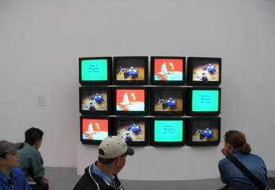 Art 21:你制作了很多重复播放的录像作品。像1967年的作品《真正的艺术家是漂亮发光的喷泉》(The True Artist Is an Amazing Luminous Fountain),反复不停的在屏幕中念出文字。对比电视上所有事物都是叙述性的,你使用的是非常稀奇的录像操作方式。