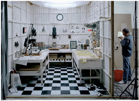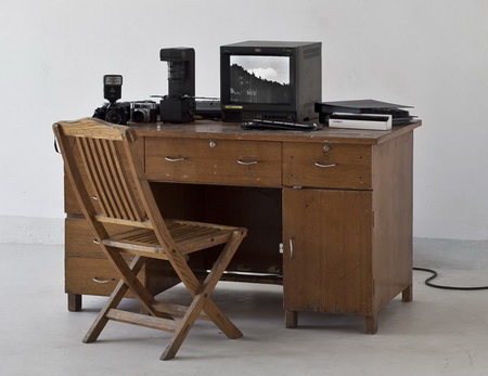 作品材质:装置(监视器、幻灯机、照相机、底片册、桌子、椅子)