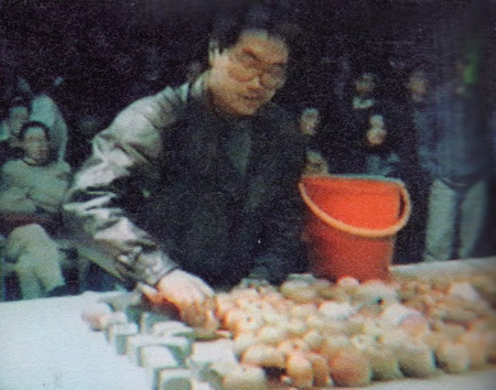 ▲ 1991年上海美术馆“苹果阐释”表演现场