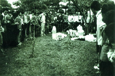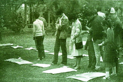 也就是在大家都在为建立自己的“思想”和“主义”忙得找不到头绪的时刻,“晒太阳”却让我们获得了一次超越的体验。在没有界线,也不受任何限制的完全开放状态下,所有热爱自由的人都可以在太阳下尽情地展现自己的思想和身姿,正如当我们回过头去追忆“晒太阳”的那段历史时,我们便会发现那是一次没有“理论”,没有“纲领”,更没有任何“主义”的艺术行动,唯一能够让我们回忆起来的只有当年印在《“晒太阳”通知》中的那句“每一个人都可以来,每一个人都是主人。”现在重新认识这十几个字,自然便会让我联想到博依斯的那句“人人都是艺术家”的名言,但在二十年以前,中国人似乎还并不知道有博依斯的存在。其实,这种观念上的不谋而合,只是自然意志对人的生命的一种特殊关怀。当我们身陷在纷乱的社会现实中不能自拔的时候,这种“关怀”便自然而然地呈现在了我们这些血气方刚的年轻人面前。因此,我们完全可以将“晒太阳”当成是自然意志在中国青年艺术家群体中显现出来的一个特殊案例。从这个意义上说,1986、87年的“晒太阳”,也完全可以称得上是一次艺术家群体在超越了一般文化和艺术经验之后,对自由进行的一次有意无意的追求。也就是在那一天,大家忘却了一切文化的纷争和隔阂,也就在那一时刻,艺术家们都感受到了一种生命的高峰体验。