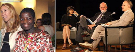 左图:新博物馆总监LisaPhillips和工作室博物馆总监ThelmaGolden。右图:古根海姆首席策展人NancySpector,馆长RichardArmstrong,蛇形画廊联合总监小汉斯(摄影:TanyaAhmed)