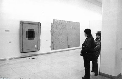 法国画家阿蛮(Arman)于1988年国际“拯救威尼斯修复长城”活动期间,在人民大会堂完成他对提琴材料的破坏和组合的作品。