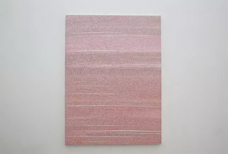 艺术家在油画布上随意想些与日常生活相关的数字相加并计算出一个总和。