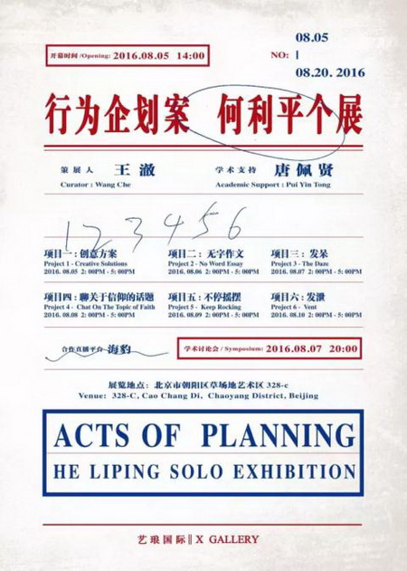 艺术家何利平带着“行为艺术不是什么?或是什么之外的可能性?”来策划、实施了《行为企划案》这件作品。他把日常的东西用超出日常经验的方式来呈现,把坚持行为艺术的语言探索与艺术家对现实生活的思考这两者结合起来推进艺术创作,探索行为艺术的边界。包括这次的《行为企划案》也是建立在这样框架基础上。