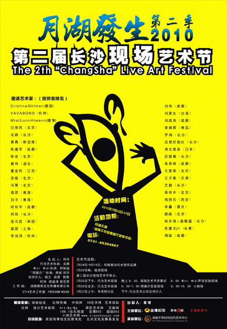 Cristina Ohlmer(德国) VAVABOND(杭州) MratLunnHtwann(缅甸)白崇民(北京) 北鸥(成都) 蔡青(新加坡) 陈建军(成都) 蔡伟(湖北)陈进(北京) 董金玲(江苏) 芬妮(北京) 冯昊(北京) 高原(青海) 刮子(青海) 何利平(成都) 何玲(长沙) 金光哲(韩国) 骏园(上海) 李剑鸿(杭州) 刘纬(成都) 刘寅生(台湾) 刘成英(成都) 李增辉(青岛) 罗 阅(长沙) 没想好剧社(长沙) 清水惠美(日本) 史智勇(长沙) 吴承典(成都) 王楚禹(北京) 王子衡(天津) 文鹏(长沙) 吴玮禾(北京) 相西石(西安) 幸鑫(重庆) 颜峻(北京) 姚永强+施隆盛(长沙) 张建夫(长春) 周斌(成都)