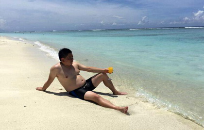 ▲8月上旬,何利平得到某旅游网赞助,前往马尔代夫再一次实施行为作品。