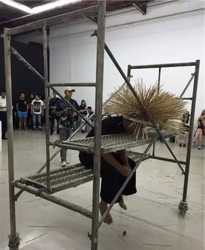 行为艺术向来容易是备受大众非议的艺术形式之一,我们曾经争议它的“暴力”、“色情”、“变态”、“偏激”、“道德底限”,以至于行为艺术好像习惯了诸多扣在它头上的各种颜色的帽子;当然也有一类备受推崇的行为艺术早就被记录成档案进了各类美术馆、艺术机构的收藏“殿堂”。而当今天的行为艺术慢慢被各类画廊、美术馆等艺术机构邀约展出,人们开始发起了新一轮的质疑:行为艺术慢慢失去它曾经的“血性”,而变得毫无力量和无聊。仿佛行为艺术自诞生之初就带着某种“决绝”的使命而来,当这种使命不再“决绝”,行为艺术也就“消亡”或“无聊”了。众说纷纭,反正行为艺术大概是众多艺术形式最难被阐释清楚和下定论的种类。但不管怎样,细数2015艺术界发生过的那些行为艺术,我们不难发现行为艺术真的越来越被机构接纳了,尤其是画廊邀约展出的增多;另一方面,艺术家的身体化的行为越来注重自身、以及和环境的交流和沟通,尤其利用网络的互动,区别于以往的仅以“伤害”性著称的“比狠”。