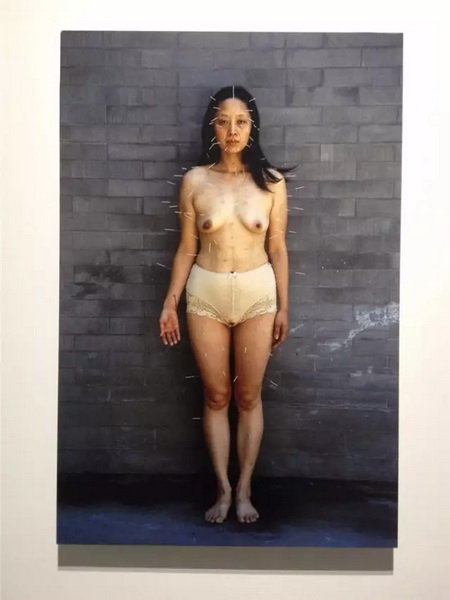 ▲何成瑶 99针 现场行为 120银针 影像 4分24秒 照片90x60cm