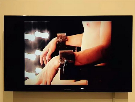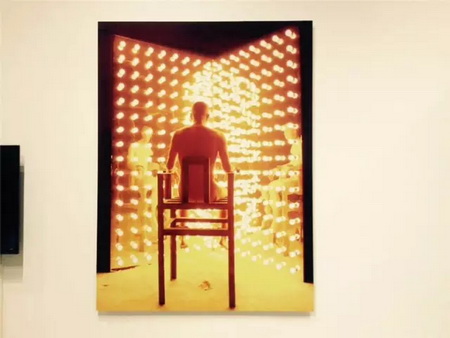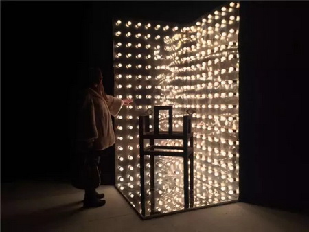 视力变化是何云昌作品《视力检测》的核心内容,在持续一小时注视一万瓦的灯泡之后,艺术家的视力明显下降。时间的消耗,空间的间隔,艺术作品体现出的是无奈的时空寂寞感以及在生命消耗过程中体现出的生命存在的自由。
