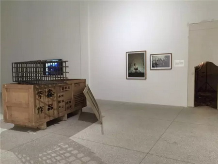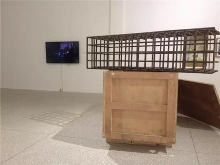 ▲辛鑫 押韵辛鑫 2008 成都-北京 现场行为 笼子 行为影像 12分18秒 照片尺寸 160x114cm