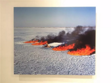▲苍鑫 冰与火 2003 黑龙江大庆市郊区 现场行为 照片 120x120cm